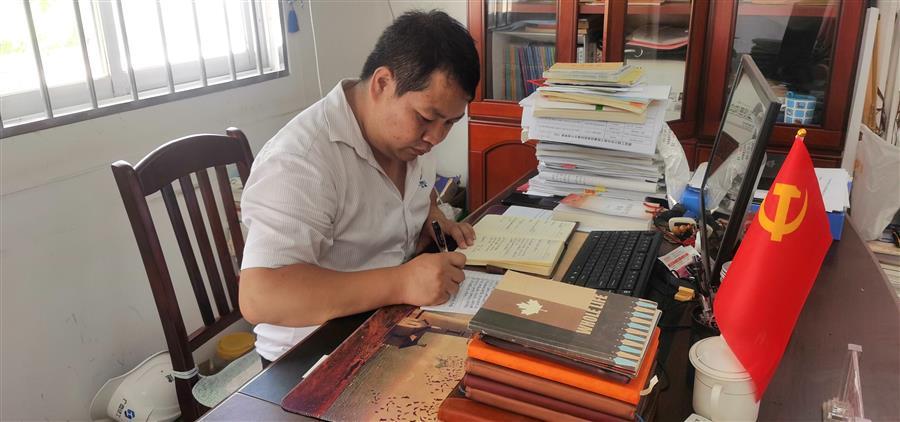 覃運成正在做筆記