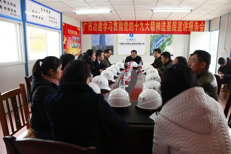 1月17日,公司黨委書記、副總經(jīng)理張濟璜,組織人事處處長梁金峰到由工業(yè)設(shè)備安裝工程公司承建的廣西玲瓏輪胎200萬套全鋼主車間工程項目部開展學習貫徹黨的十九大精神進基層宣講報告會。