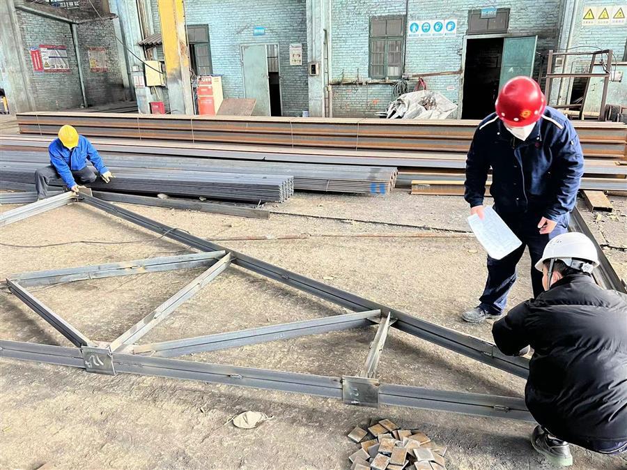 廣西柳鋼環(huán)保公司鋼渣廠1#廠房氣窗及3-11#柱屋面鋼結(jié)構(gòu)與彩瓦更換工程鋼結(jié)構(gòu)預制加工現(xiàn)場,焊接“火花”不斷,工人作業(yè)有序。據(jù)了解該項目屬于檢修項目,工期緊,需提前加工預制完后,才能拆除現(xiàn)場舊屋架,現(xiàn)場生產(chǎn)環(huán)境高溫腐蝕嚴重,為了確保項目施工安全,施工班組每天進場前都要進行安全交底。當前,該項目完成5片屋架組隊,2跨天窗主體鋼框架,所有構(gòu)件制作完成,整體已完成年前計劃進度約85%,加工過程中甲方隨機抽檢均合格。