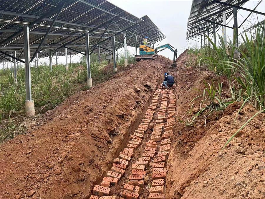 項目規(guī)劃總占地面積1509.9畝,建設(shè)規(guī)模為50MW,該項目的建成將有效助力當(dāng)?shù)禺a(chǎn)業(yè)結(jié)構(gòu)優(yōu)化、節(jié)能減排,促進(jìn)綠色可持續(xù)發(fā)展。項目已實現(xiàn)節(jié)點并網(wǎng),現(xiàn)階段主要圍繞電纜敷設(shè)、溝槽開挖、接地網(wǎng)敷設(shè)、圍欄安裝開展工作。當(dāng)前,項目支架安裝完成66.32%,組件安裝完成66.32%,累計完成產(chǎn)值2270萬元。