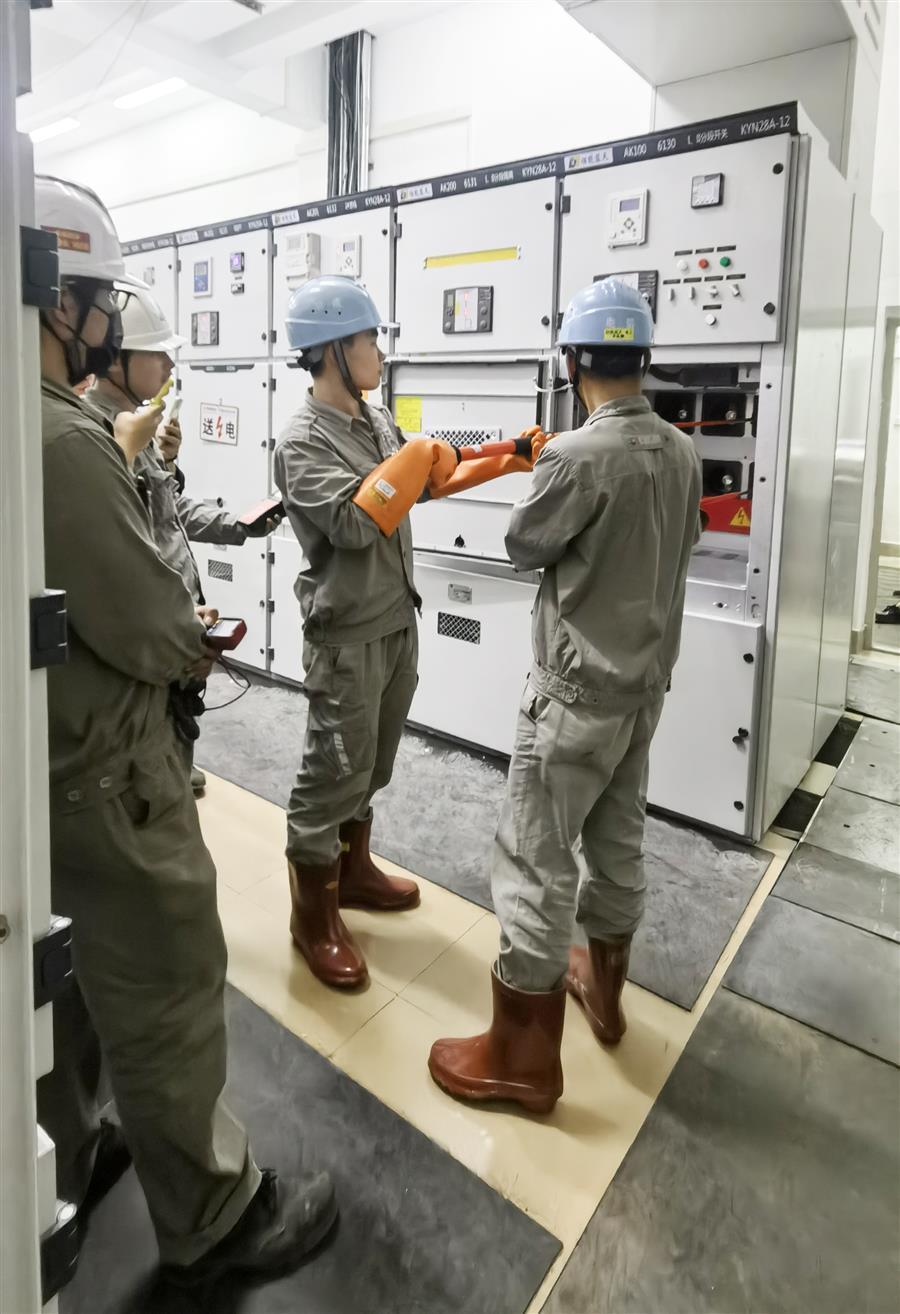 為確保按時順利送電,項目部多次組織技術(shù)人員對電氣樓進行檢查確認,特別是對高低壓柜、隔離開關(guān)等設(shè)備的功能、絕緣進行了多次檢查和測試,為保證整個送電過程安全順利進行創(chuàng)造了有利條件。