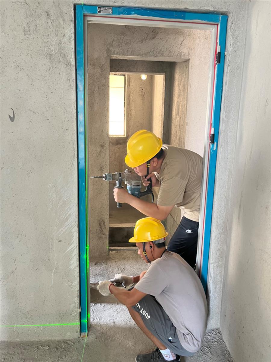 在項(xiàng)目現(xiàn)場(chǎng),工人們頂著烈日?qǐng)?jiān)守崗位。鋼筋綁扎工人一手固定住鋼筋,一手熟練地把鋼筋綁扎好;電焊工人“全副武裝”,一手舉著防護(hù)面罩,一手拿著焊槍嫻熟作業(yè);抹灰工人飛舞著抹灰刀,熟練地向墻面抹水泥砂漿;安裝工人操作電鉆將門窗穩(wěn)穩(wěn)地安裝到位……熱火朝天的大干現(xiàn)場(chǎng)依然井然有序。