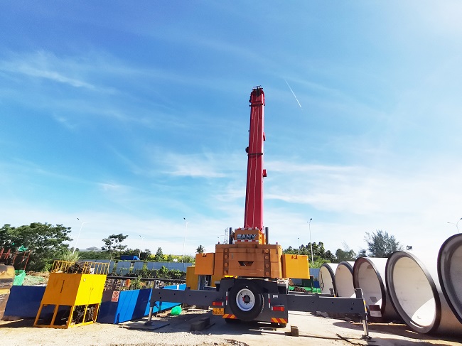 觀(guān)瀾湖北區(qū)區(qū)外排水工程(PG3 線(xiàn))項(xiàng)目位于海南省??谑杏^(guān)瀾湖北區(qū),主要建設(shè)內(nèi)容為布置4.79km長(zhǎng)的排水箱涵。項(xiàng)目所處位置的地質(zhì)環(huán)境復(fù)雜,還緊鄰高速公路,工作井靠近魚(yú)塘和高壓電塔,地上管線(xiàn)多,給施工作業(yè)帶來(lái)重重困難和挑戰(zhàn)。為了保證施工質(zhì)量和建設(shè)效率,第三分公司邀請(qǐng)專(zhuān)家精心策劃施工方案、組建精英團(tuán)隊(duì)施工,項(xiàng)目團(tuán)隊(duì)提前規(guī)劃好了運(yùn)輸路線(xiàn),并與交通部門(mén)緊密協(xié)調(diào),確保了各項(xiàng)準(zhǔn)備工作的周全,為項(xiàng)目建設(shè)順利進(jìn)行奠定了堅(jiān)實(shí)的基礎(chǔ)。