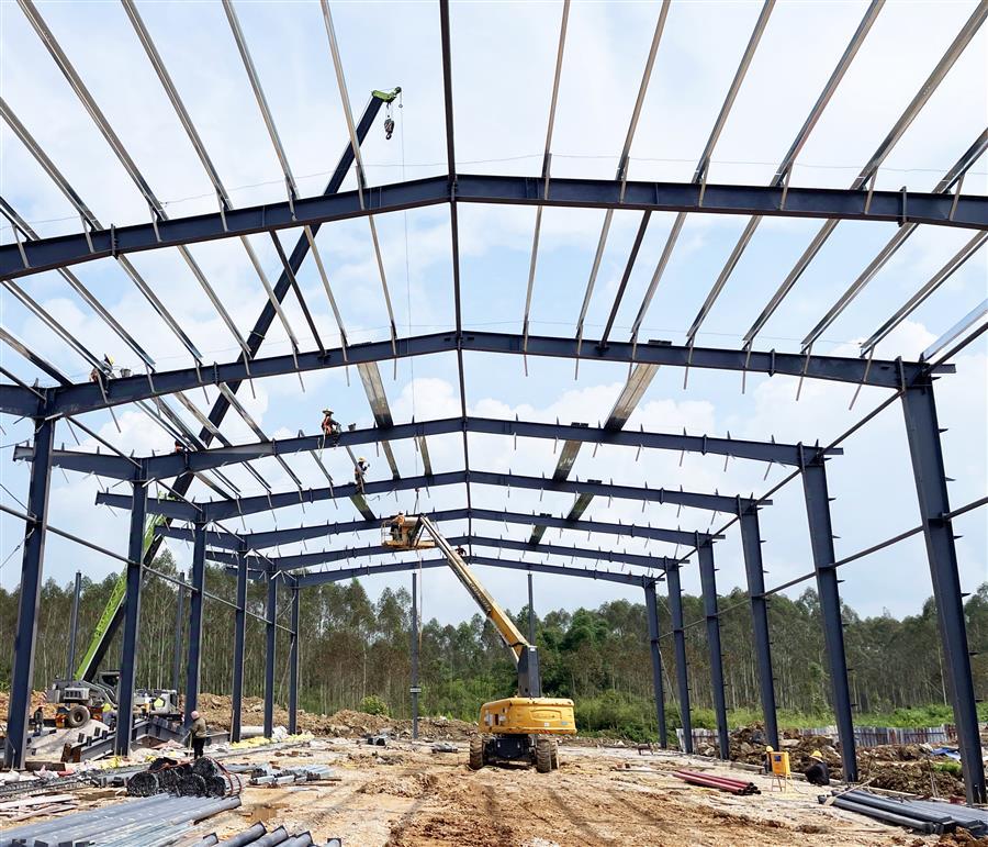 項目開工以來,為加快建設(shè)進度,項目部嚴格按照公司相關(guān)要求進行施工管理,克服重重困難,制定科學(xué)的施工組織計劃,由專員監(jiān)督指揮施工。該項目占地面積約2萬平方米,總建筑面積1.2萬平方米,主要建設(shè)一棟鋼架結(jié)構(gòu)標準廠房,配套建設(shè)道路、圍墻、綠化、電氣、消防及給排水等設(shè)施。目前已完成基礎(chǔ)承臺及地腳螺栓的預(yù)埋,鋼結(jié)構(gòu)安裝完成40%,配套建設(shè)施工內(nèi)容完成30%。