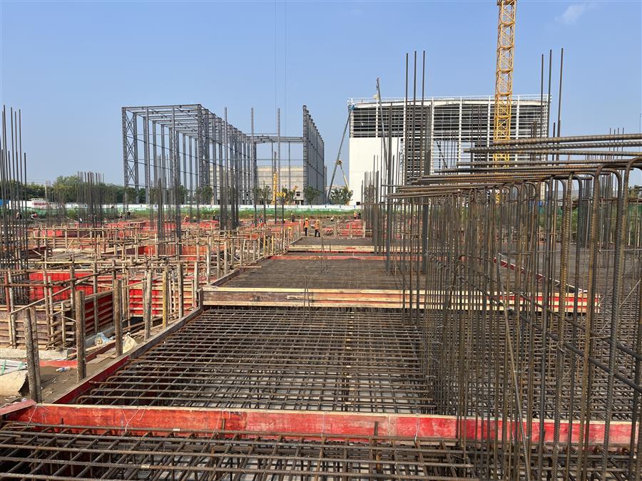 為確保項(xiàng)目建設(shè)順利開展,項(xiàng)目部制定科學(xué)的施工方案,合理安排施工時(shí)間,認(rèn)真抓好安全生產(chǎn)工作,嚴(yán)把質(zhì)量關(guān)。目前,項(xiàng)目已完成了3#高標(biāo)庫(kù)基礎(chǔ)混凝土墊層、4#分揀中心及6#冷庫(kù)的 CFG 樁、2#分揀中心基礎(chǔ)混凝土墊層等施工內(nèi)容,2#高標(biāo)庫(kù)基礎(chǔ)擋墻鋼筋綁扎已完成100%,模板安裝已完成70%。