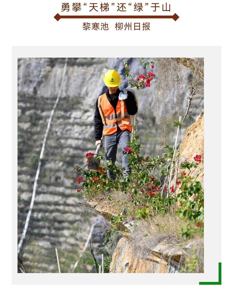 近日,“神奇神木杯”第31屆人民攝影“金鏡頭”(2021年度)新聞攝影作品評選在陜西省神木市揭曉。柳州日報社記者黎寒池拍攝的冶建公司桂華分公司承建的柳州市樓梯山采石場山體復綠工程項目作品——《勇攀“天梯”還“綠”于山》獲自然環(huán)境新聞類組照金獎,此獎是時隔20年后,廣西攝影師再次在該賽事中獲獎,并斬獲廣西首個金獎。