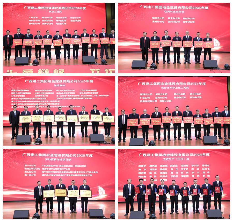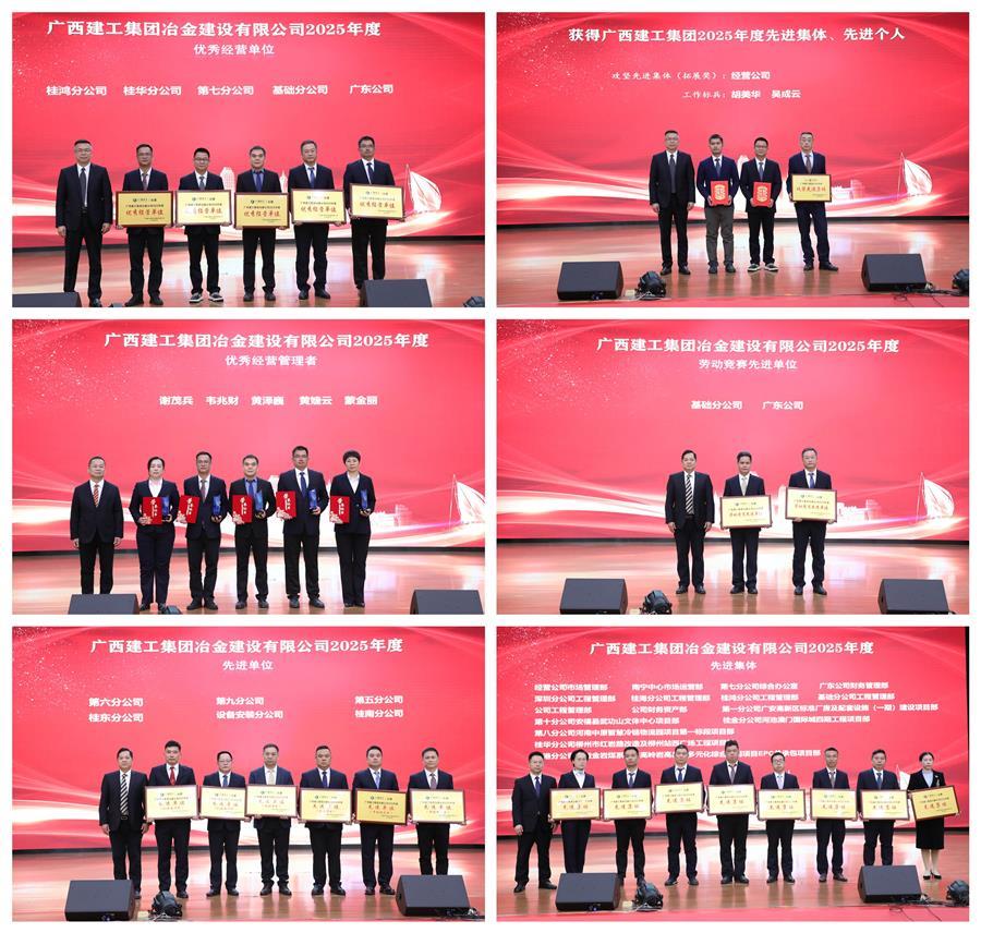 會(huì)上表彰了公司2025年度先進(jìn)單位、集體及個(gè)人,勞動(dòng)競(jìng)賽先進(jìn)單位、項(xiàng)目部及個(gè)人,優(yōu)質(zhì)工程、優(yōu)秀科技成果、安全文明標(biāo)準(zhǔn)化工地等。桂鴻分公司、桂華分公司、第七分公司、第一分公司等5家單位作經(jīng)驗(yàn)交流發(fā)言。