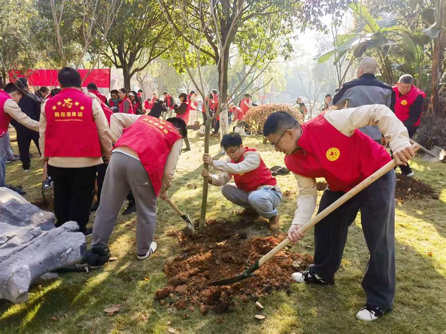 活動現(xiàn)場,團(tuán)員青年們分工協(xié)作、干勁十足,揮鍬鏟土、扶苗填坑,合力種下數(shù)十株紫花風(fēng)鈴木。新栽的樹苗迎風(fēng)挺立,為春日動物園增添了幾分生機(jī)。