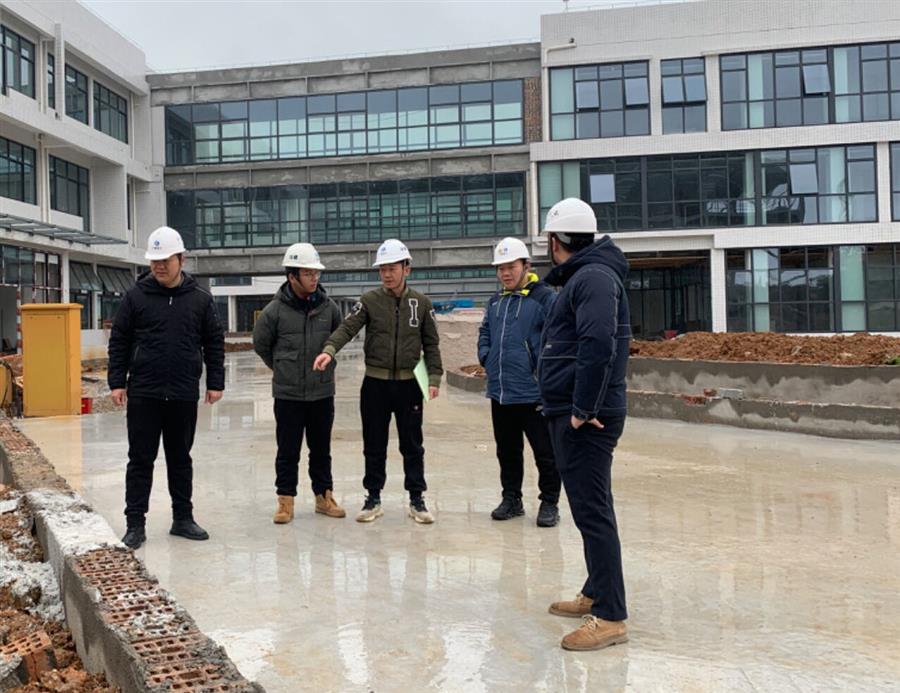 何登培(左一)到項(xiàng)目現(xiàn)場開展工作