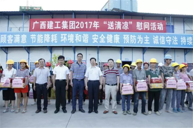 柳州市高新區(qū)科技園專家公寓樓工程由我司桂華分公司承建。87日下午,廣西建工集團(tuán)副總經(jīng)理侯立林冒著高溫酷暑,專程從南寧前來項目建設(shè)現(xiàn)場給一線職工和農(nóng)民工送清涼,公司領(lǐng)導(dǎo)歐志永、賴海標(biāo)、廖立波參加活動。130多份價值9000多元的慰問品,在十多分鐘的時間里,全部發(fā)放完畢。